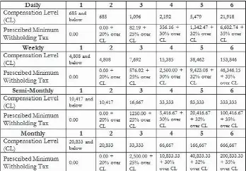 Revised Withholding Tax Table Bureau Of Internal Revenue